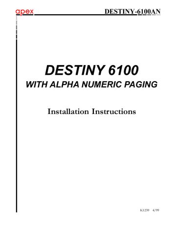 Free PDF DESTINY 6100 PROGRAMMING MANUAL Doc